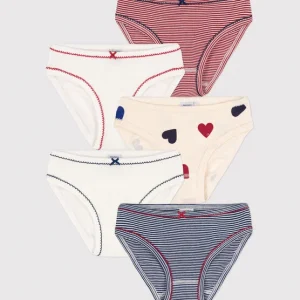 • slips, 5-pack, wit/gestreept/hartjes - PETIT BATEAU
