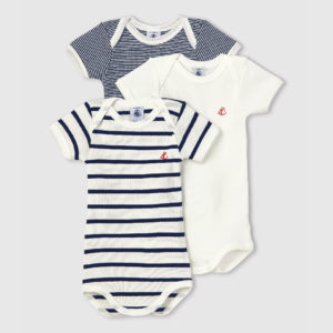 • body korte mouw, 3-pack, wit/gestreept - PETIT BATEAU