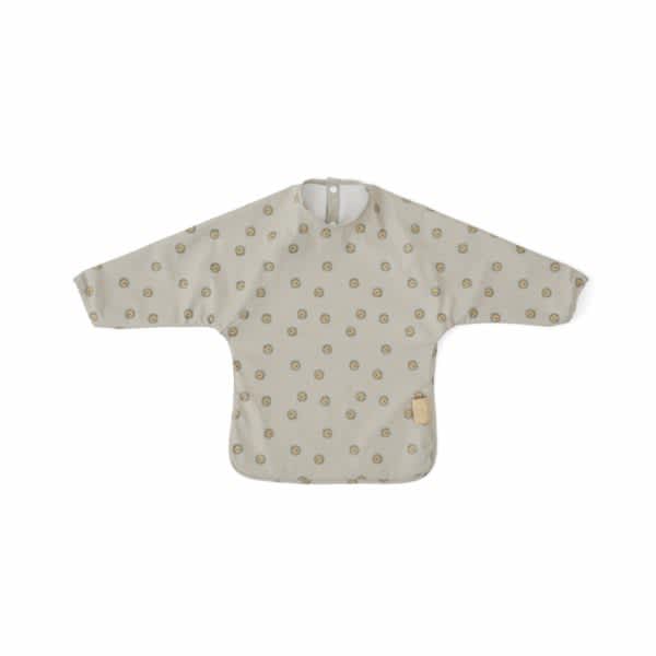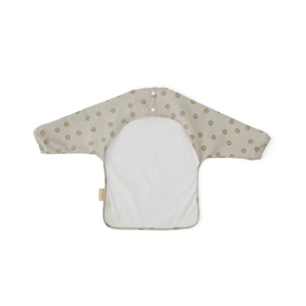 Het schortje bedekt de voorkant en de armen van het kind en zorgt ervoor dat de kleding van de baby niet vuil wordt tijdens de maaltijd.