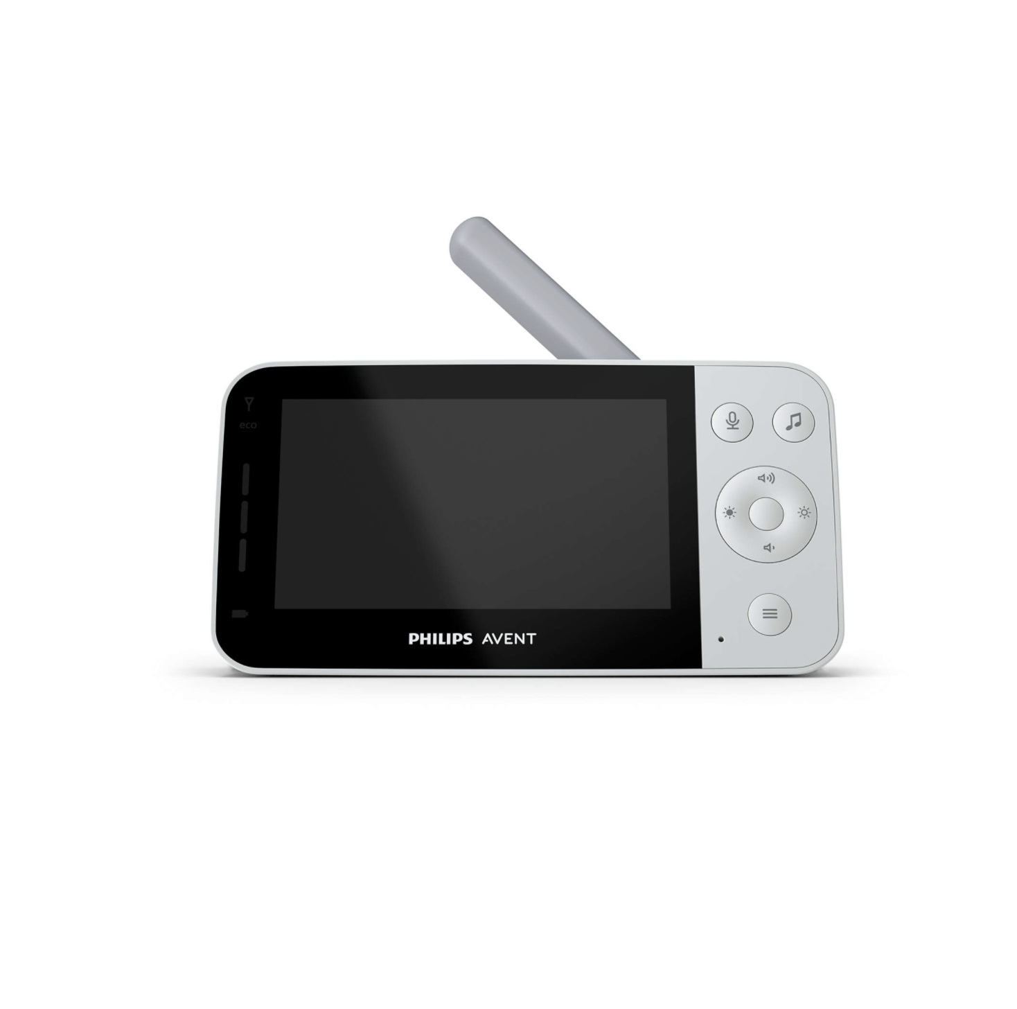De oplaadbare ouderunit heeft een batterijduur van maximaal 12 uur* en een 4,3″-kleurenscherm. Je kunt je kleintje dus de hele dag en zelfs tot in de avond in de gaten houden voordat je weer moet opladen.
