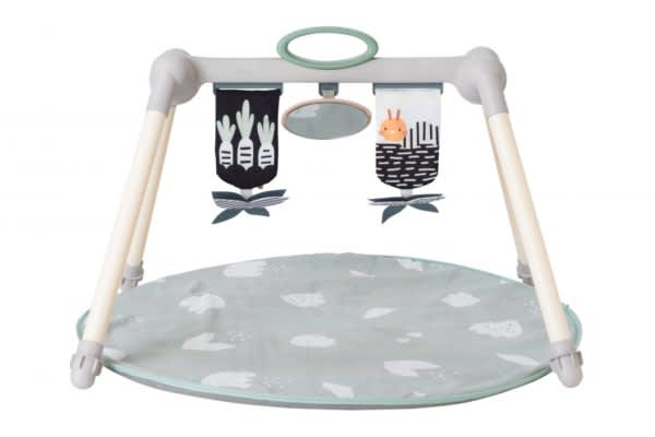 Stijlvolle speelmat met opvouwbare baby gym, ideaal voor onderweg. De baby gym heeft een dubbelzijdig ontwerp voor 2 ontwikkelingsstadia om baby’s zintuigen en motorische ontwikkeling te stimuleren. De contrasterende kleuren, met vlindermobiel en baby-veilige spiegel, zijn geschikt vanaf 0 maanden. De kleurrijke illustraties met rammelaar en bietenbijtring zullen je baby vanaf 2 maanden entertainen. Dankzij de opvouwbare poten en het handvat, neem je deze baby gym gemakkelijk overal mee naartoe. De 4 afneembare, multisensorische hangspeeltjes stimuleren de ontwikkeling van baby’s zintuigen, fijn en grove motoriek en oog-handcoördinatie.
