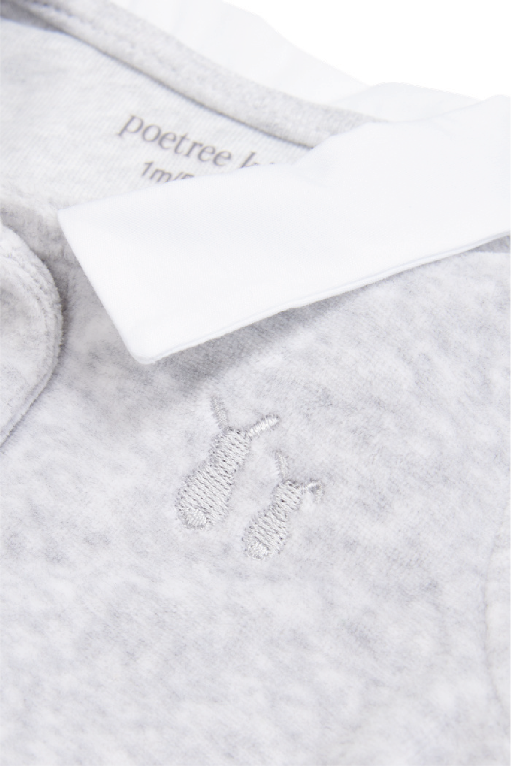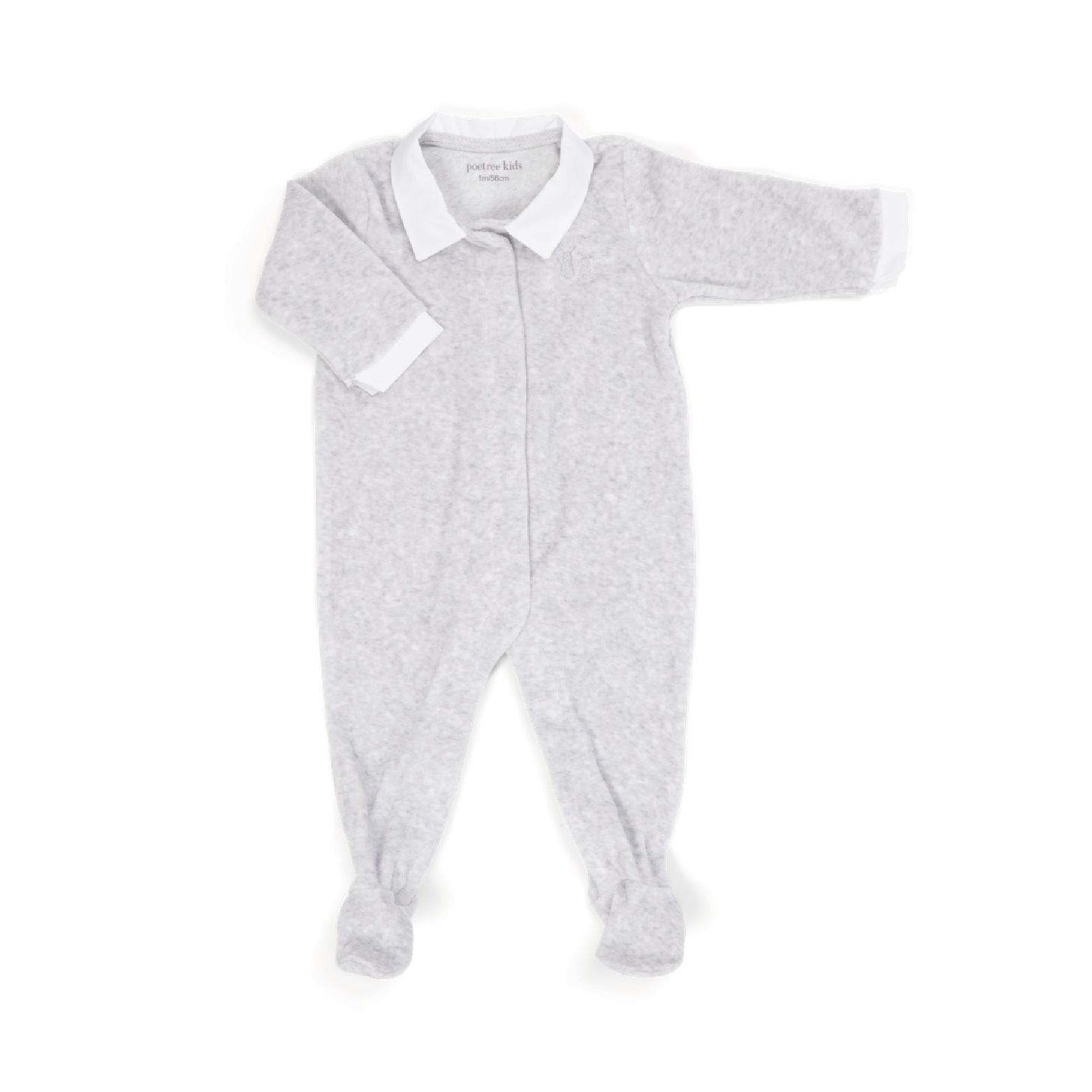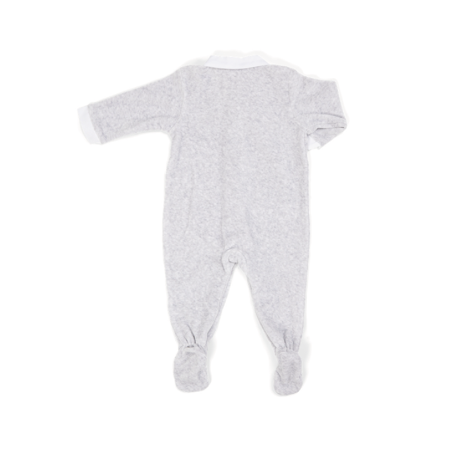Dit babypakje is gemaakt van super zacht fluweel en heeft een mooie poplin kraag en manchetten.
