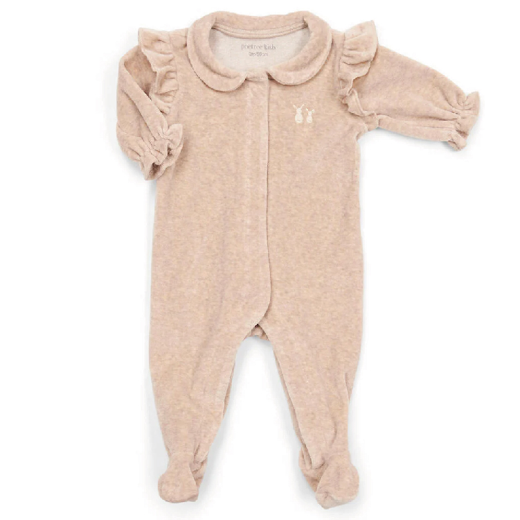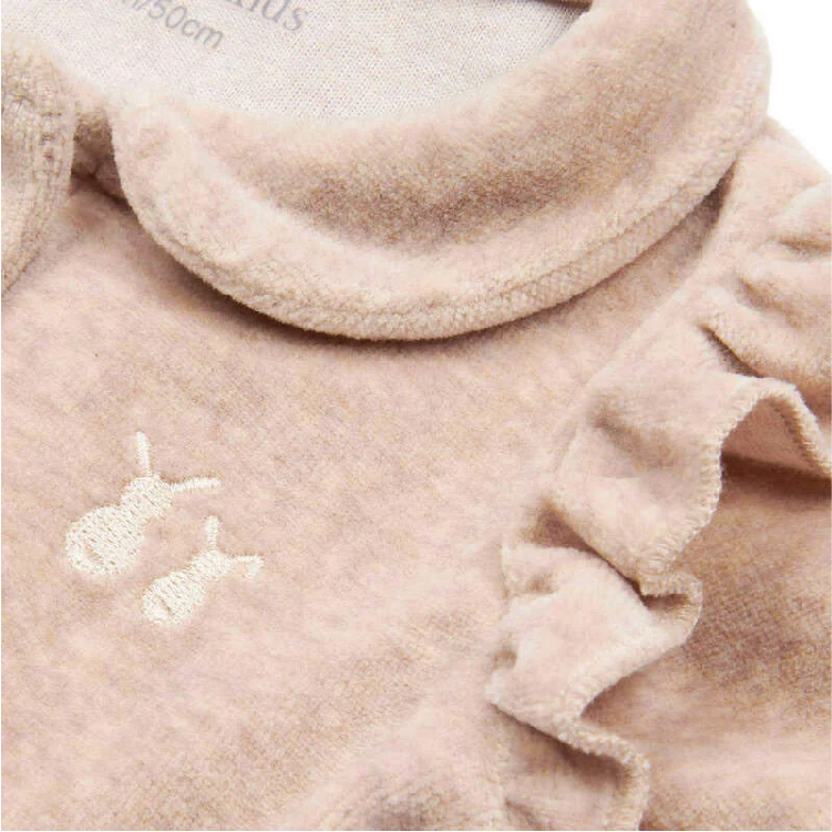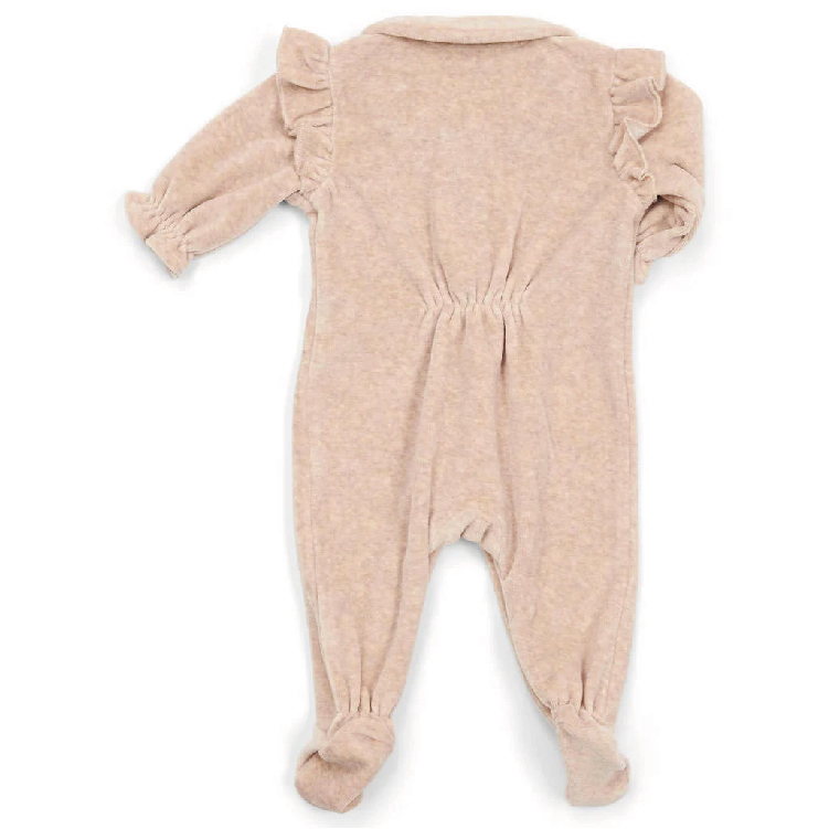 Dit babypakje is gemaakt van super zacht fluweel en heeft leuke ruffles bij de schoudertjes en kleine plooitjes op de rug.