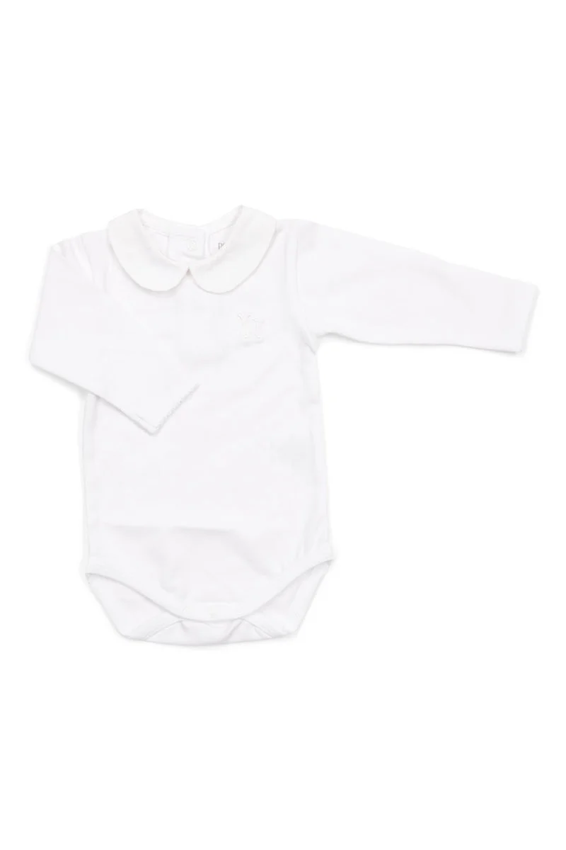 Deze lange mouw body baby in katoen/elastane met opening aan de onderkant en aan de achterkant bij de rug is schattig te dragen met alleen een broekje maar kan ook heel leuk onder een vestje of truitje gedragen worden. Kanten details aan de mouwtjes.