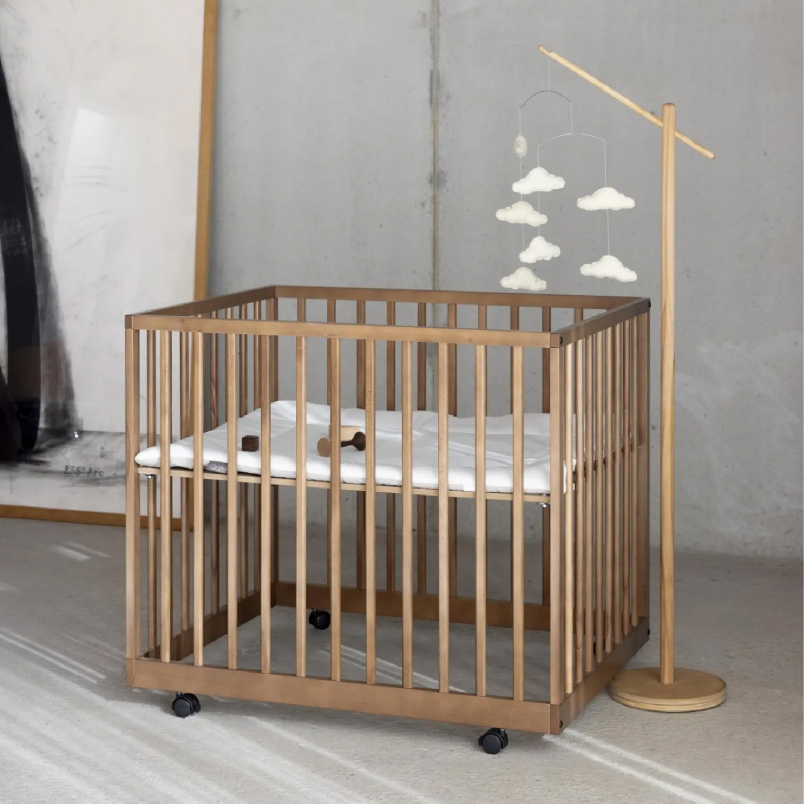 Met de Houten Staander – Mobiel voeg je een vleugje magie en verwondering toe aan de wereld van je kleintje. Deze betoverende houten staander maakt het eenvoudig om een mobiel (apart verkrijgbaar) te bevestigen, waardoor je kindje wordt meegenomen op een reis vol dromen en verbeelding.
