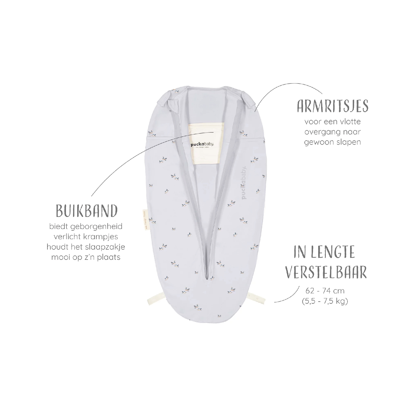 Het Puckababy® inbakerslaapzakje is de oplossing wanneer je een onrustige baby hebt die veel huilt, moeilijk in slaap valt en ook al snel weer wakker wordt. Inbakeren kan dan helpen, maar is in veel gevallen niet nodig. Ook artsen die het strakke inbakeren afraden, bevelen het inbakerslaapzakje van Puckababy® wel aan. Het slaapzakje zit als een fraai, lief coconnetje om de baby heen. Het biedt toch de geborgenheid die de baby nodig heeft om goed te kunnen slapen maar zit niet strak en is warmte regulerend. Voor ouders is dit niet zo’n ingrijpende stap. Het ziet er mooi uit en het bouwt gemakkelijk af.