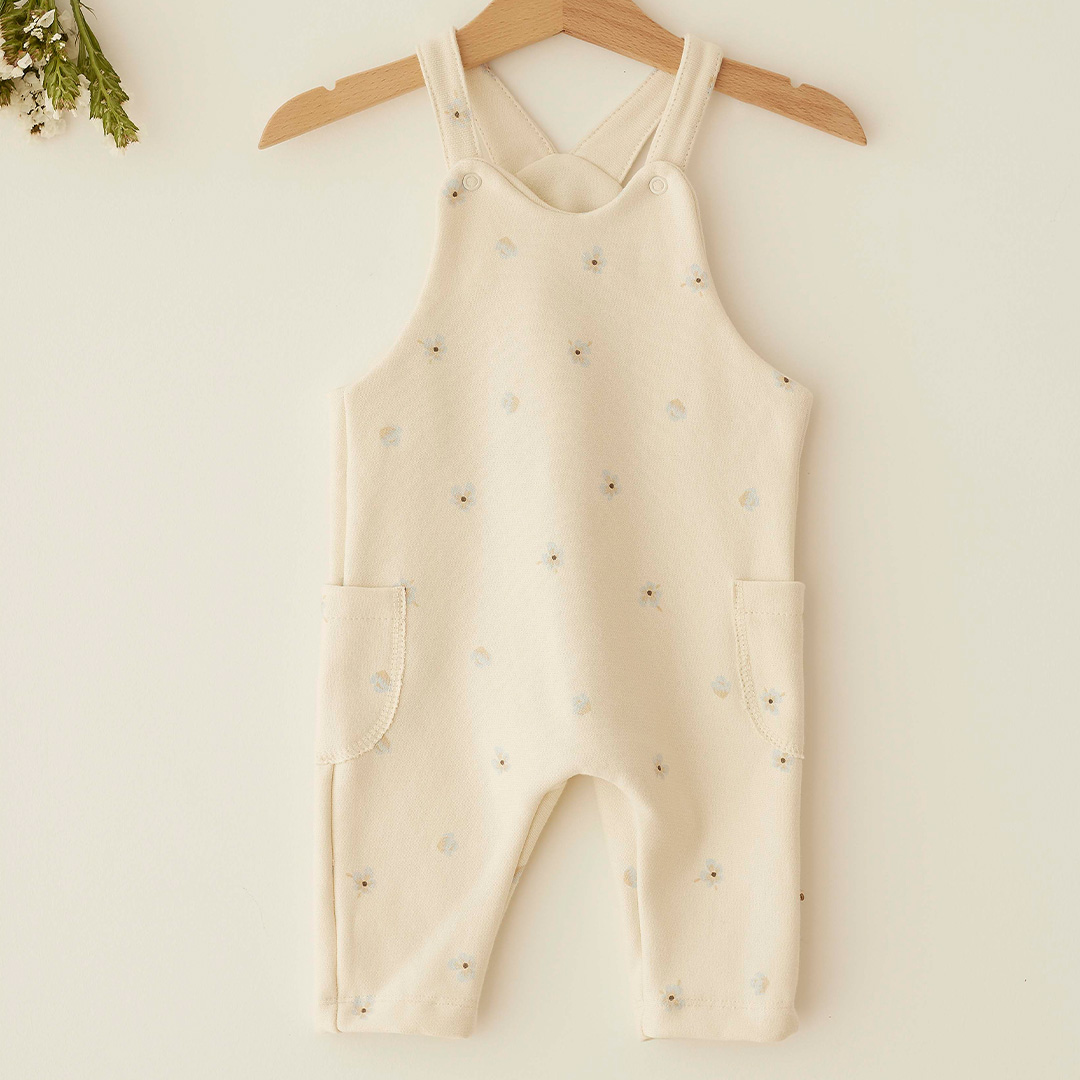 Jumpsuit van biokatoen, rechte halsuitsnijding en gekruiste schouderbandjes op de rug, met drukknopen aan de zomen. Opgezette zakken aan de zijkant. Gemaakt van 100% biologisch gecertificeerde katoen.