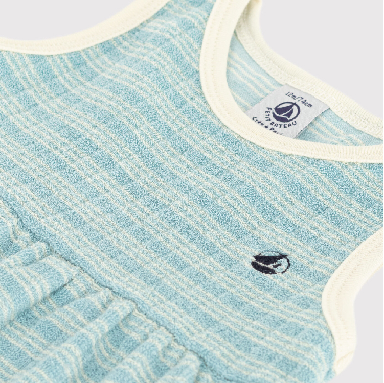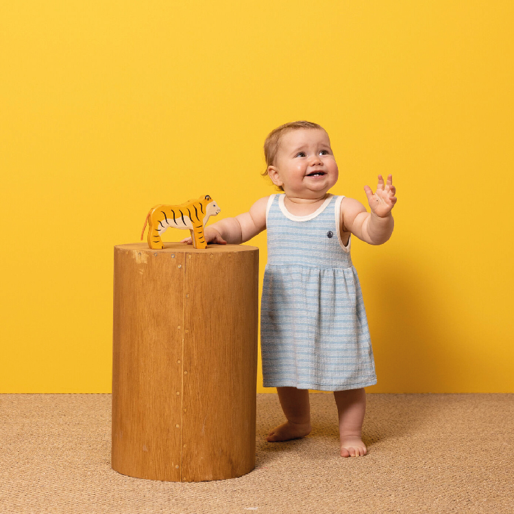 • Katoen afkomstig uit biologische landbouw die een respectvolle cultuur van de grond zonder ggo’s garandeert. Door dit katoen aan te bieden beperkt Petit Bateau zijn impact op de planeet.