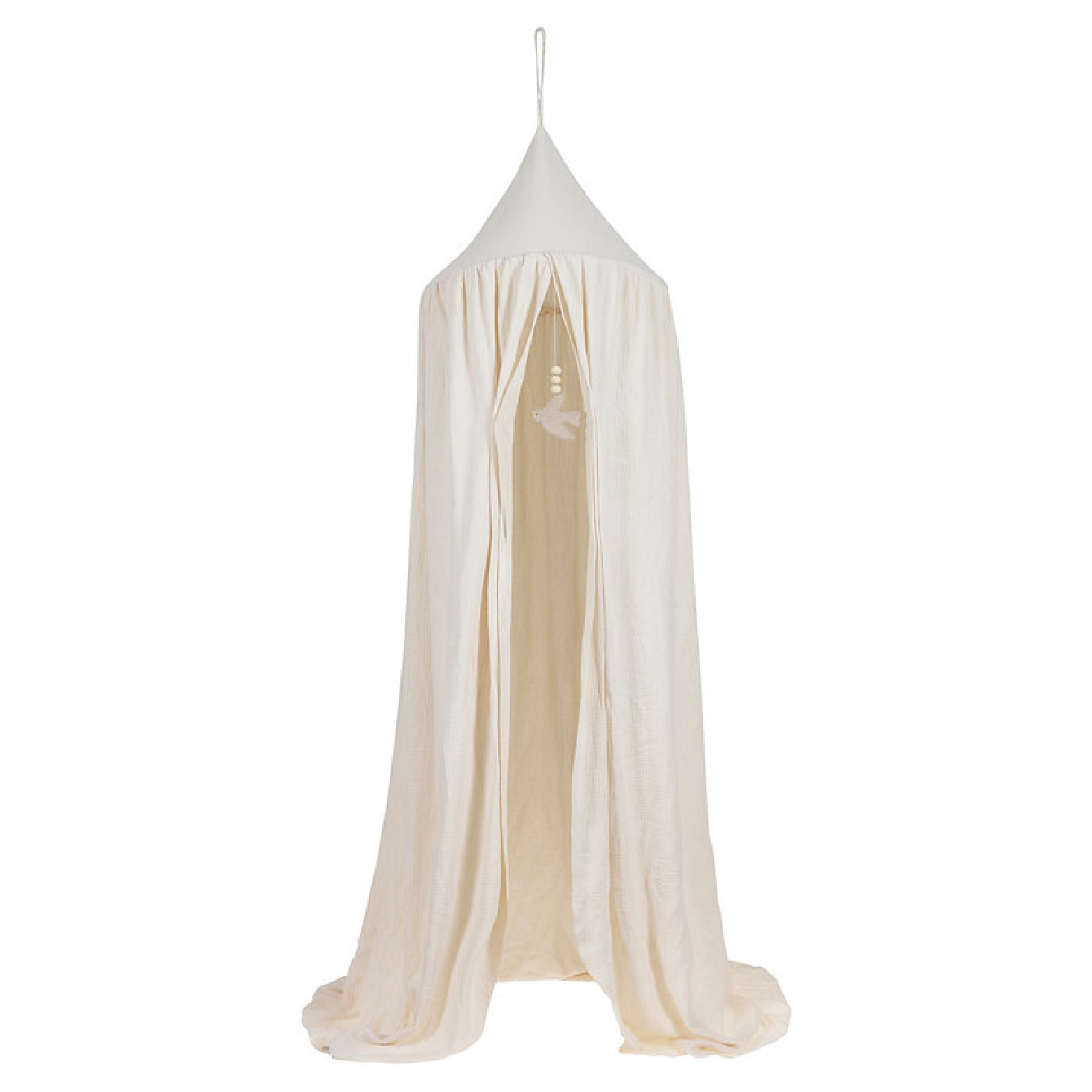 De mooie Nanami bedhemel is 1.80 m hoog en heeft romdom ruim 3,5 mtr stof. De stof is van de mooie katoen mouseline.