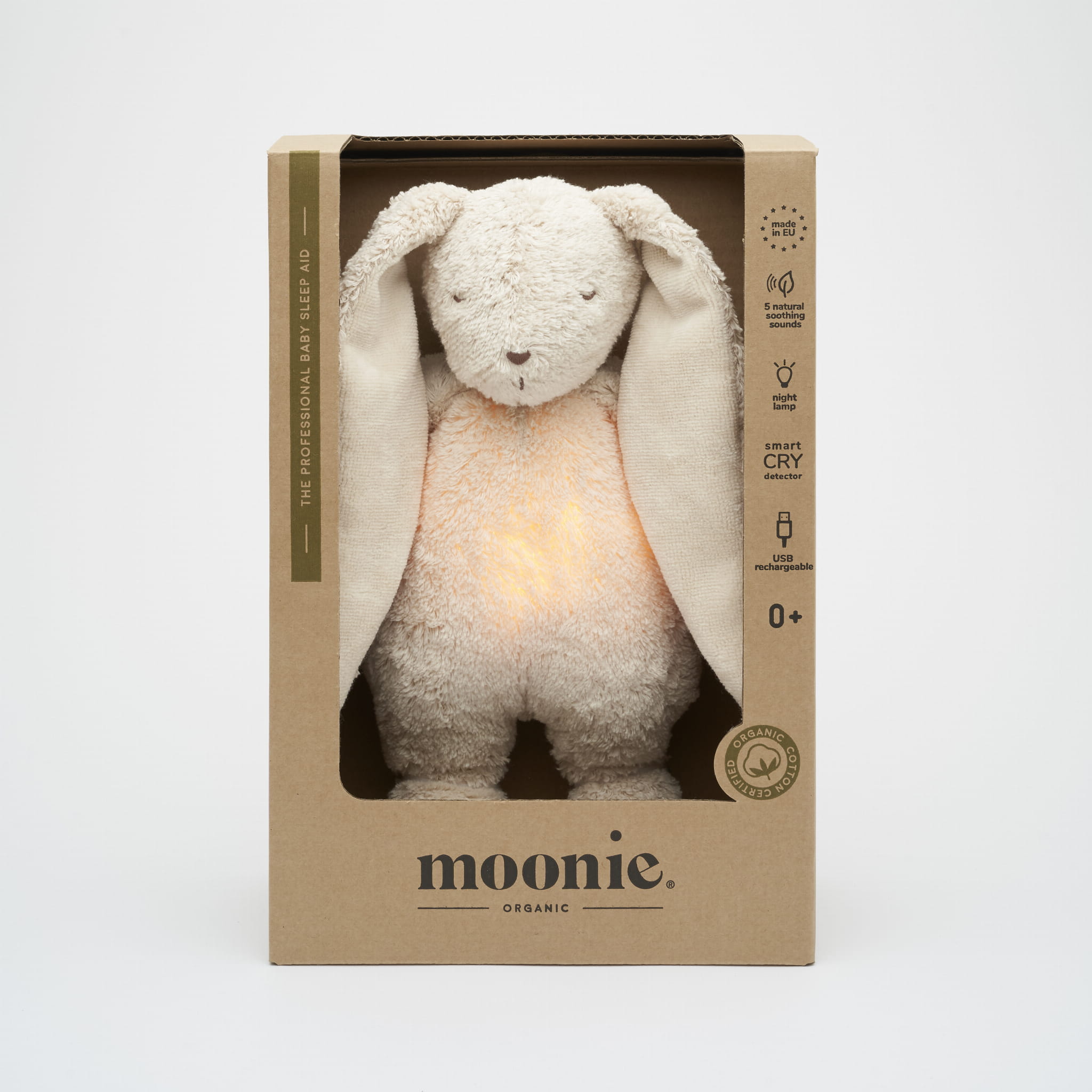 Het allerliefste MOONIE slaaphulpje dat je baby door middel van witte ruis in no time naar dromenland brengt.