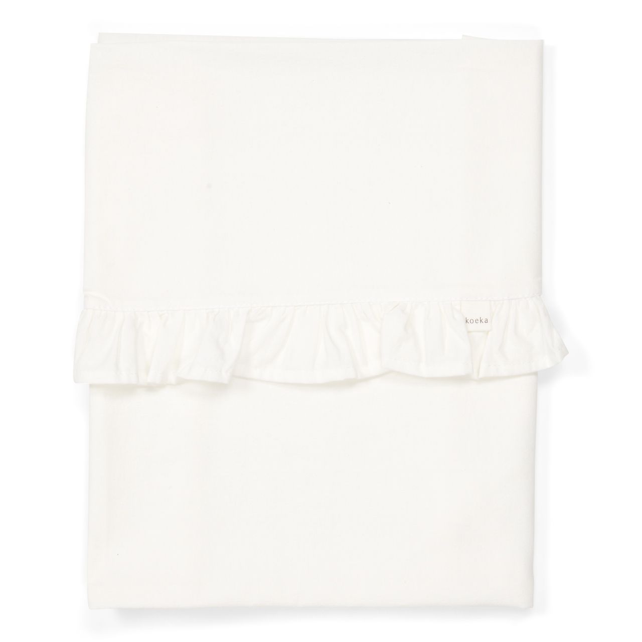 De kleur is off-white, net van wit af, waardoor het laken mooi past met alle Koeka dekens.