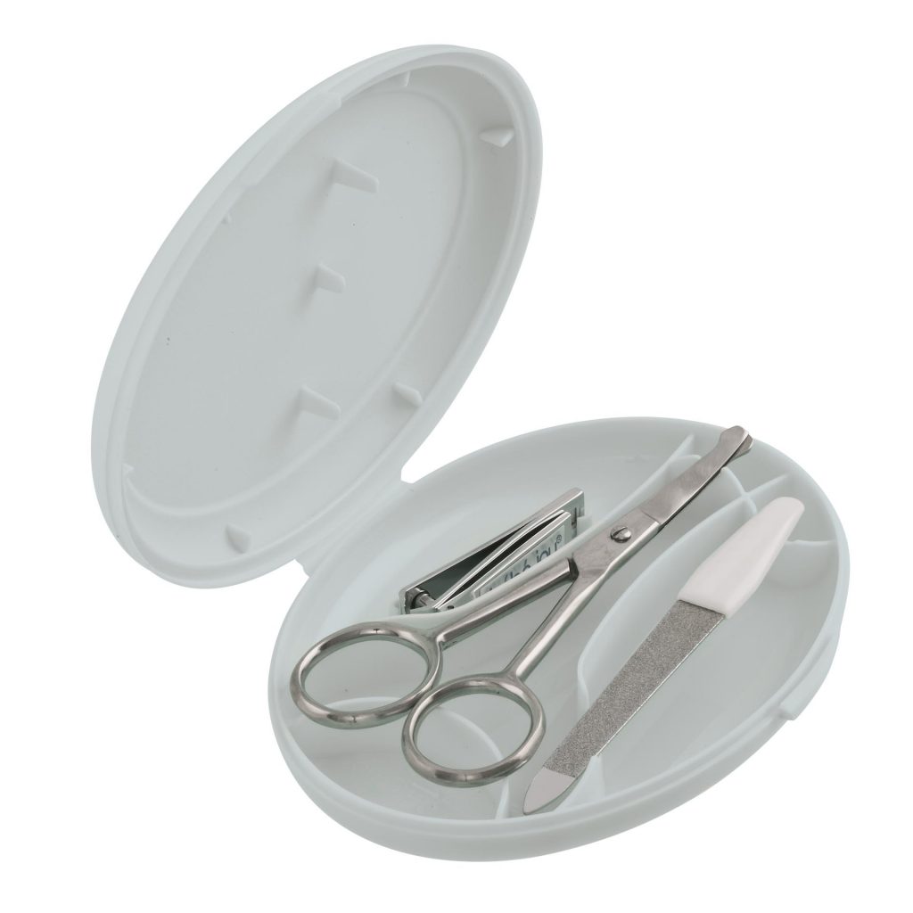 De nageltjes van je kleintje groeien zeer snel. Om te voorkomen dat jekleintje zich krabt is regelmatig knippen en verzorgen erg belangrijk.Het meest praktisch is dit, om na het badderen te doen omdat de nageltjes dan zacht zijn. De manicureset van bébé-jou bevat een nagelvijltje, nagelknippertje en roestvrijstalen schaartje. Deze artikelen zijn speciaal vormgegeven om de kwetsbare kinderhand goed teverzorgen. Het speciale baby nagelschaartje (rvs) is slijtvast, extra veilig door de speciale, afgeronde uiteinden en ook los in etui verkrijgbaar.