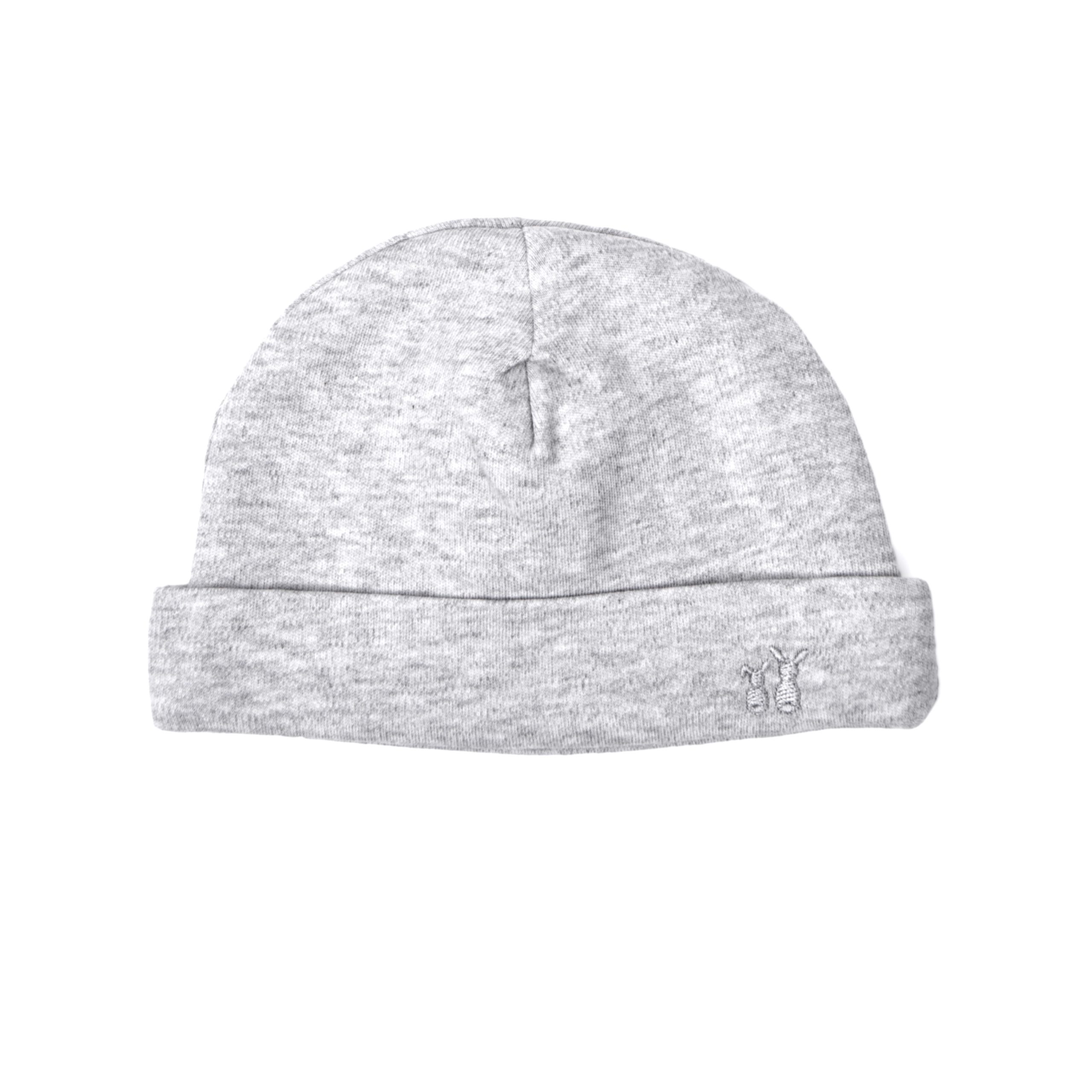 Dit mutsje past perfect bij de grijze Poetree Kids baby pakjes en alle artikelen van de Chevron Light Grey melange collectie.