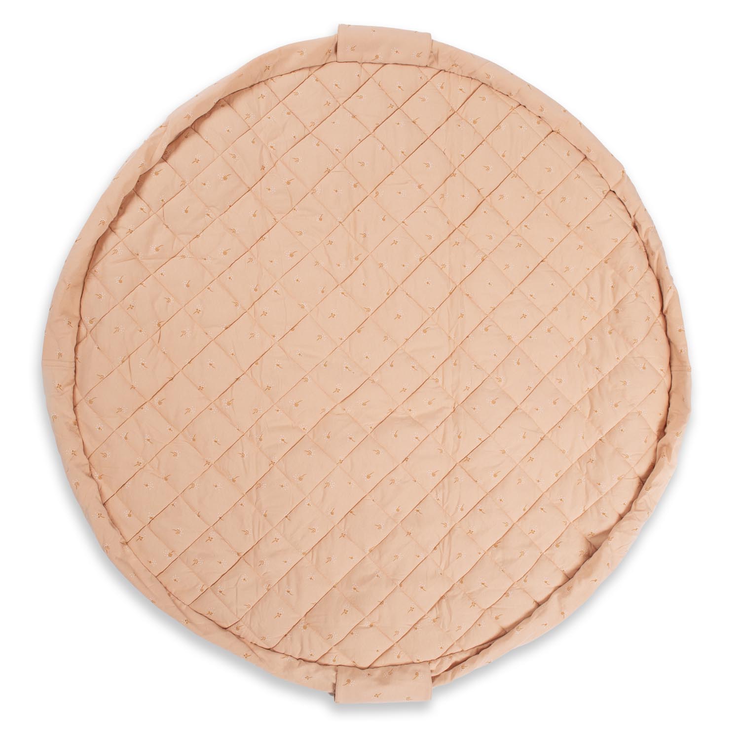 Ervaar het vernuft van onze uniek ontworpen gewatteerde baby speelmat, nu opgewaardeerd met de etherische Moon print. Deze ingenieuze creatie transformeert moeiteloos in een opbergtas voor speelgoed en een luiertas, en biedt gemak dat niet ten koste gaat van de stijl. Met een royale diameter van 120 cm en gemaakt van het fijnste GOTS biokatoen is dit speelkleed niet alleen een bewijs van het comfort van je baby, maar ook een eerbetoon aan ethisch en duurzaam vakmanschap. Dit speelkleed en luiertas worden naadloos geïntegreerd in je dagelijkse routine en belichamen praktische bruikbaarheid, functionaliteit en de betoverende magie van de nachtelijke hemel.