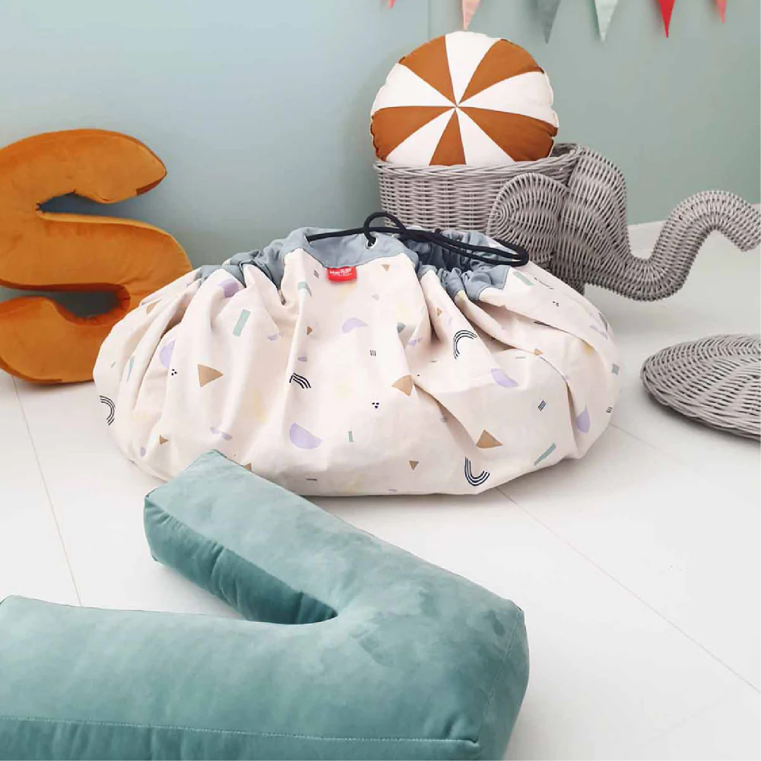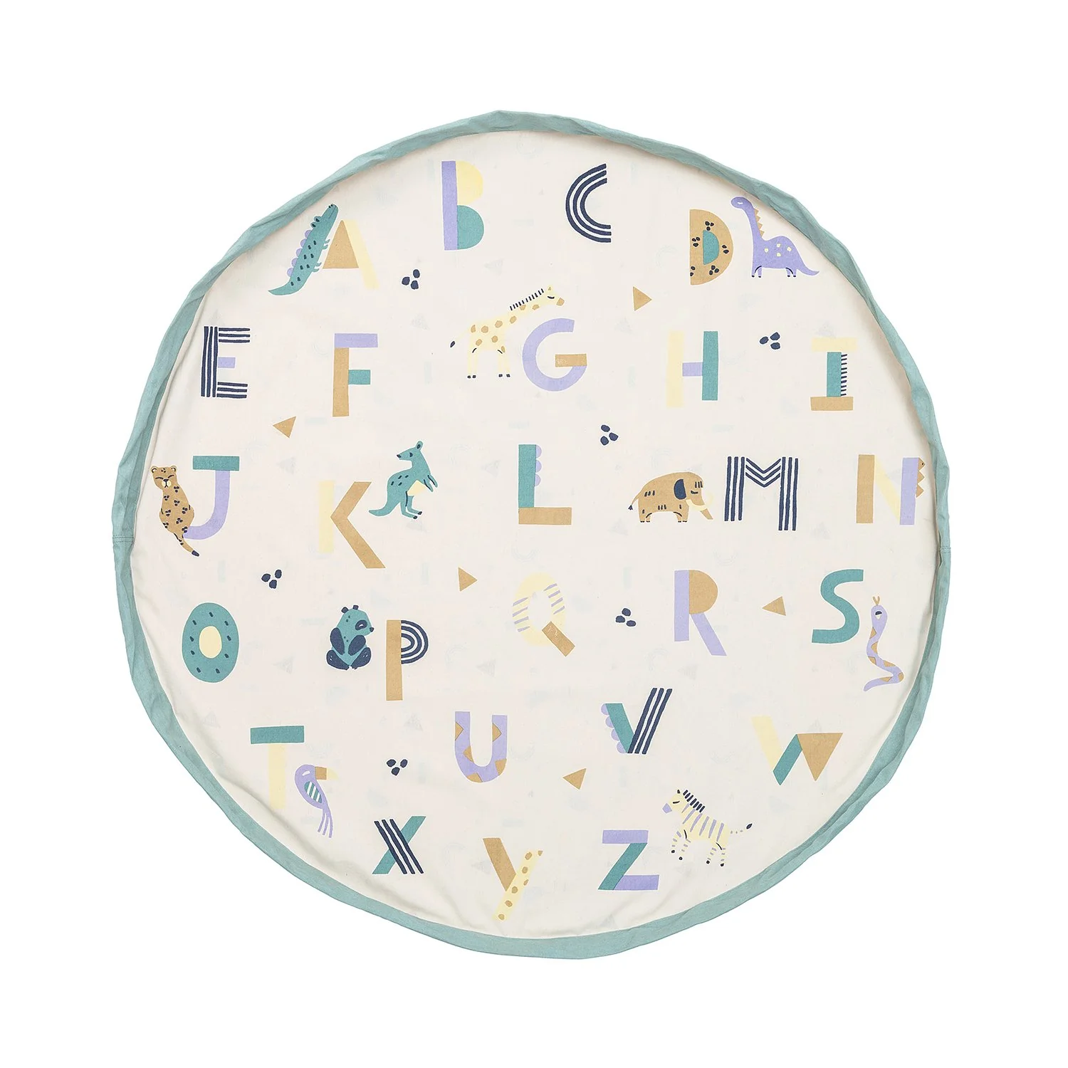 Met alle letters van het alfabet en een aantal eigenzinnige dierenvriendjes is deze mat een geweldige plek om op ontdekking te gaan en avontuurlijk te zijn met al je favoriete speelgoed. Neem vrienden en familie mee om uit te rusten of te spelen op deze grote cirkelvormige mat. De mat kan worden samengepakt en gebruikt als opbergzak als het spel is afgelopen. Trek de gesp en de verstelbare riemen aan om de mat van kamer naar kamer te brengen of om de mat aan het eind van de dag op te hangen. Het elegante pasteldesign is volledig omkeerbaar en het tweede patroon heeft regenbogen en vormen die jongens en meisjes van elke leeftijd zullen aanspreken. Ideaal voor het stimuleren van zintuiglijk spel op een kindvriendelijke manier.