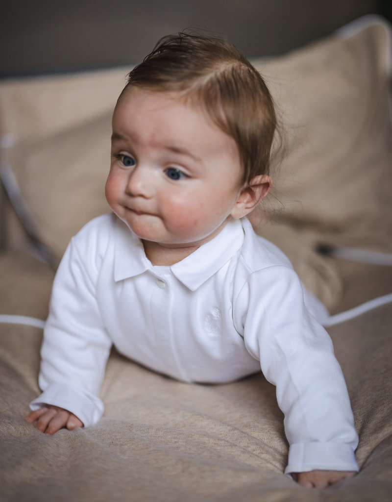 Deze leuke set is gemaakt van heerlijk zacht katoen en bestaat uit een wit overhemdje en een camel kleurige broekje.