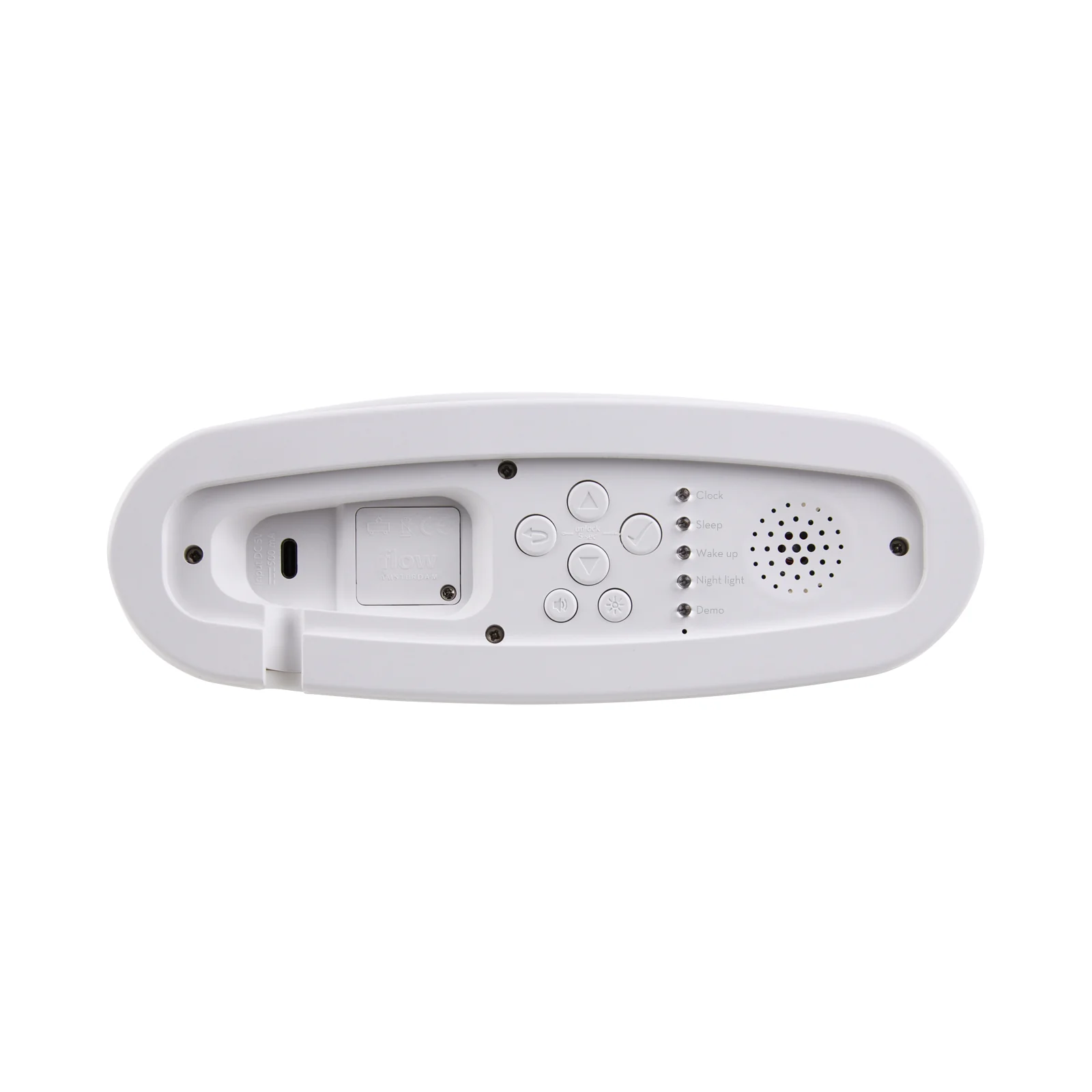 Flow Amsterdam slaaptrainer, digitale en analoge klok en nachtlampje. De slaaptrainer leert je kindje wanneer het tijd is om te gaan slapen en wakker te worden door middel van kleuren. Ze leren zo een gezond slaapritme, wat belangrijk is voor de ontwikkeling. Hiernaast kan de slaaptrainer gebruikt worden als een klok en nachtlampje. De slaaptrainer komt met een adapter die in het stopcontact gestoken dient te worden. Wanneer je de silicone hoes verwijderd, kan je de tijd van de analoge klok instellen door middel van het zwarte knopje aan de achterkant.