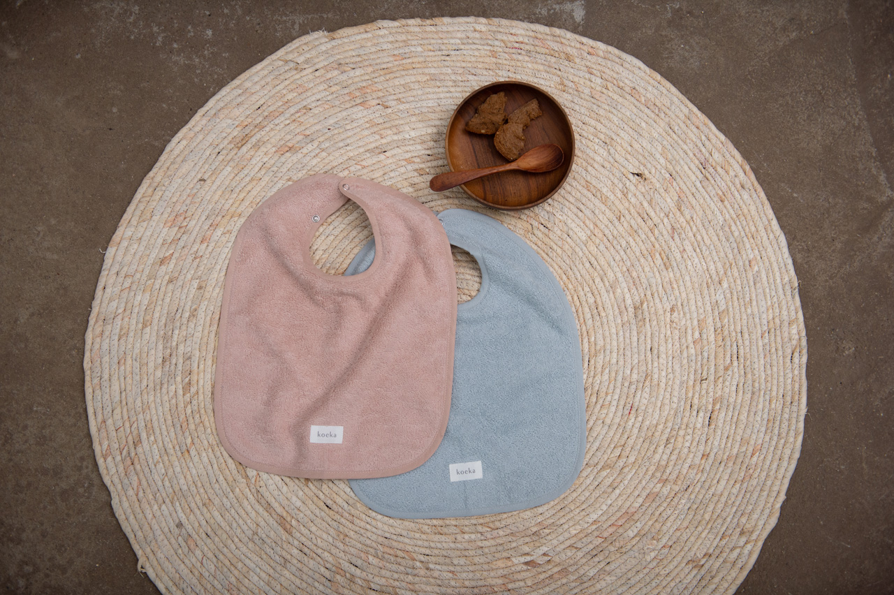 Houd de kleding van je baby schoon met deze praktische Koeka slab. Door het handige, grote formaat beschermt de slab de kleding goed tegen knoeien. Omdat de slab een drukknoopsluiting met twee verschillende standen heeft, is deze geschikt voor zowel baby als peuters en kan je hem dus extra lang gebruiken. De afwerking met de bies die matcht met de kleur van de badstof geeft de slab een eigen look. De mooie, absorberende badstof is gemakkelijk en eindeloos te wassen.