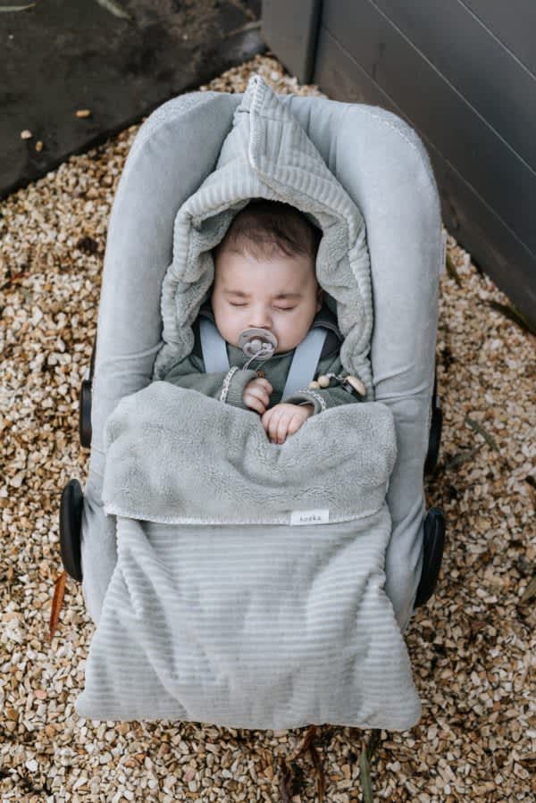 Deze met teddy gevoerde voetenzak past in een autostoel 0+ of Maxi-Cosi met drie- of vijfpuntsgordel en houdt je kleintje lekker warm als je in de koudere maanden op pad gaat. Voor extra warmte en comfort kan je door middel van een klittenbandsluiting aan de bovenzijde een hoodie vormen. De voetenzak is eenvoudig te openen met een rits en de bovenkant kan je omslaan en vastzetten met een koordje. Zo zit je kleintje er heerlijk bij en ga jij stylish op pad!